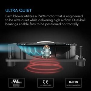 - Quiet UL-certified blower designed to be placed on top of various electronics to draw out heat.