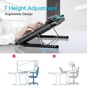 - 【Unique 7 Height Adjustable & Phone Holder Design】 The cooling pad have 7 height for you select. free adjust suit different laptop. Unique phone holder stored on the left side of the laptop cooler base. can conveniently put your phone or tablet in cooling pad left or right to view information easily