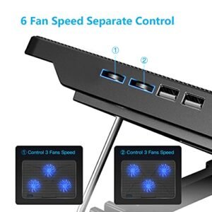 - 【6 Ultra Quiet Fan & Adjust Fan Wind Speed】This special laptop cooler with 6 ultra quiet fans. Our laptop cooling pad 6 fans can work together. or 3 fans run separately. two separate switch control fan speed from 0 to max freely
