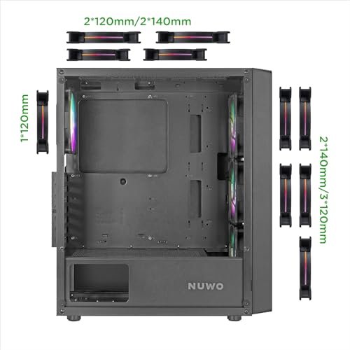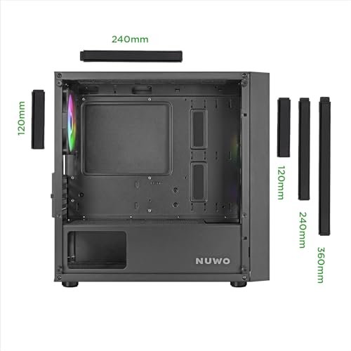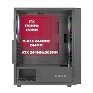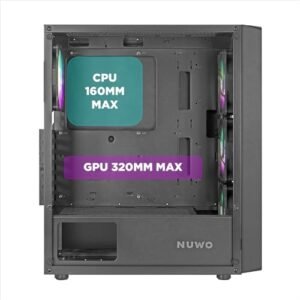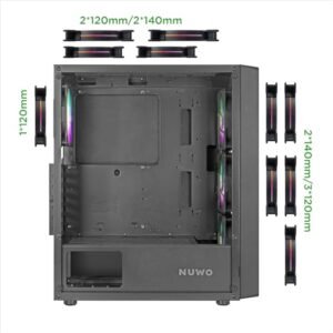 Nuwo Rodan R603 Black Gaming PC Case Mid-Tower ATX. Micro ATX. Mini ITX. 4 x 120mm Pre-installed ARGB Addressable LED Fans – Tempered Glass Mesh Front and Side Panels