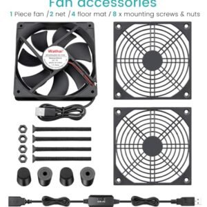 - High Performance: Good for use in home theaters and other electronics.1 Piece fan include fan Protective net. 4X Foot columnsand 4Xmounting screws & nuts
