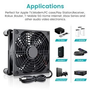- Effective Cooling: USB fans designed to cool various electronics and components. like TV box. AV receiver. DVR. router. modem. for xbox series x cooling . playstation. microcomputer. survelllance recorder. mini PCs. T-Mobile home internet gateway and other audio aideo electronics